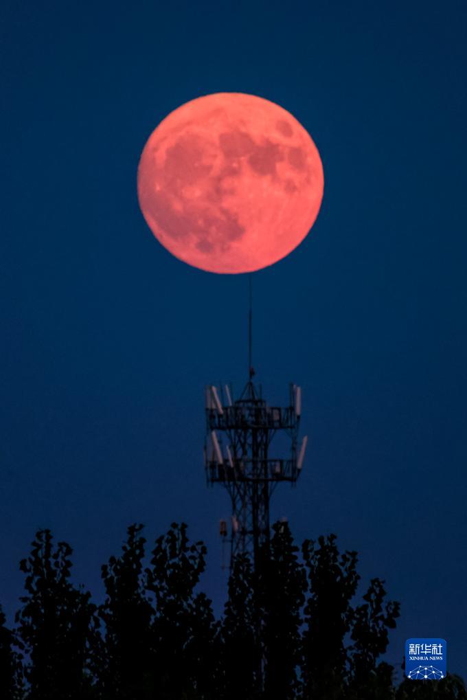 8月30日在山東省淄博市高青縣拍攝的月亮。8月30日至31日,本年度最大“超級月亮”現身天宇。