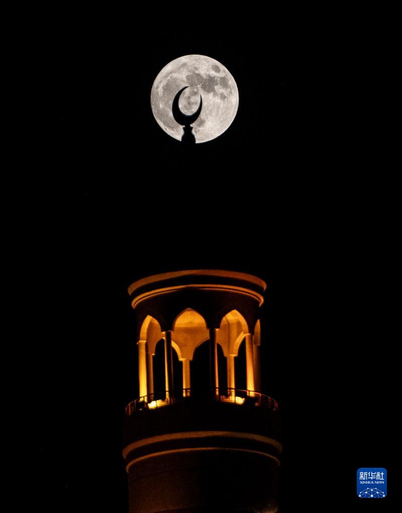 這是8月30日在卡塔爾多哈拍攝的“超級月亮”。