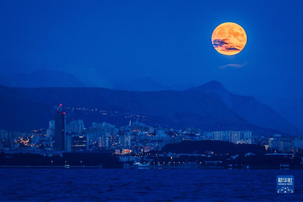 這是8月30日在克羅地亞斯普利特拍攝的“超級月亮”。