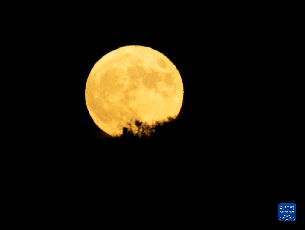 這是8月30日在美國舊金山金門(mén)大橋附近拍攝的“超級月亮”。