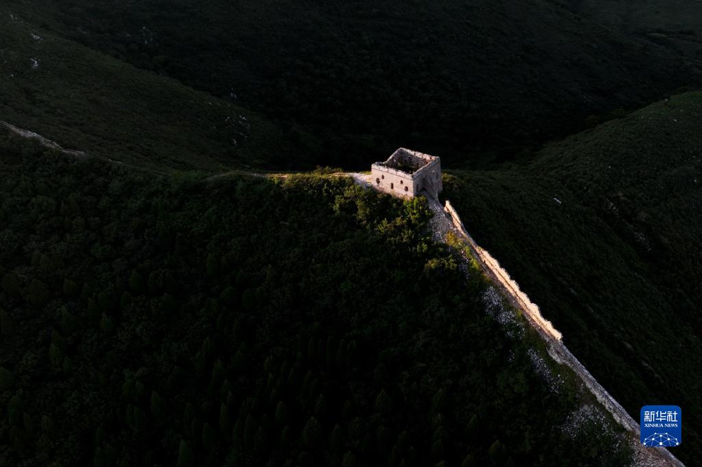 落日余暉中的河北唐山遷安市徐流口長(cháng)城(8月29日攝,無(wú)人機照片)。