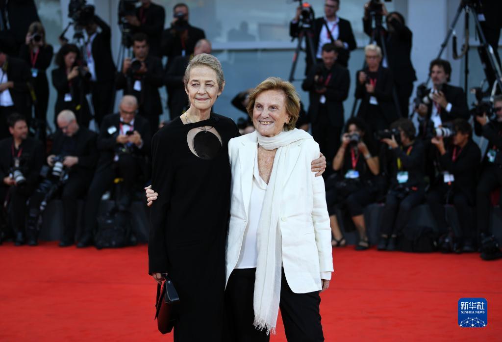 8月30日,在意大利威尼斯,獲得終身成就金獅獎的意大利導演利利亞娜·卡瓦尼(右)和演員夏洛特·蘭普林亮相開(kāi)幕式紅毯。