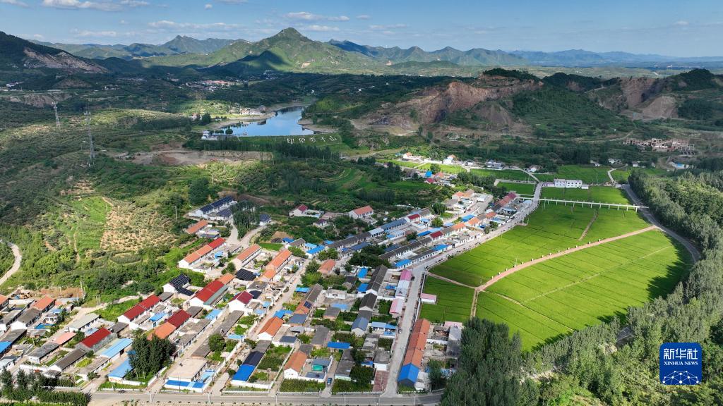 河北唐山遷安市樓子山村內的百畝稻田。該村打造精品大米生產(chǎn)基地,并建設稻香小鎮(8月29日攝,無(wú)人機照片)。