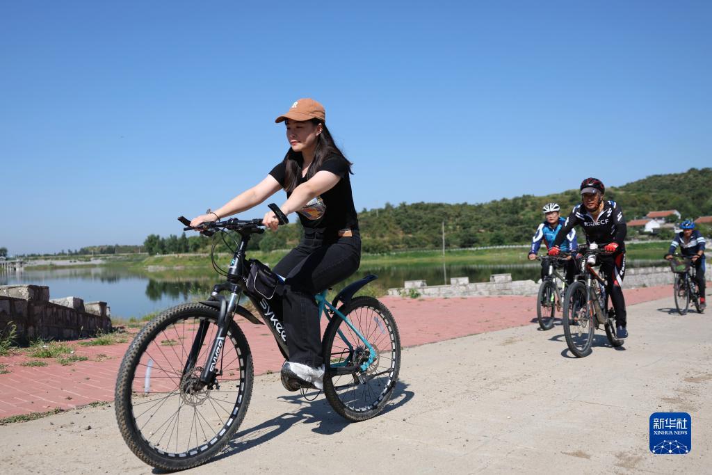8月30日,騎行愛(ài)好者在河北唐山遷安市萬(wàn)寶溝村內騎行。該村依托長(cháng)城旅游資源打造成自行車(chē)運動(dòng)主題村。