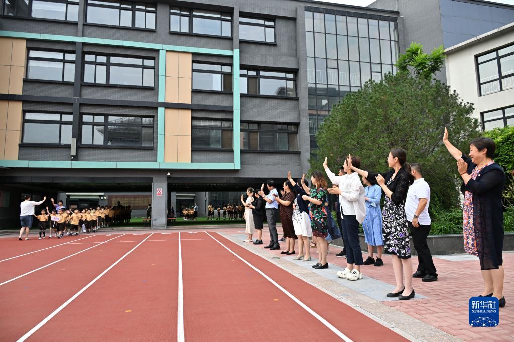 8月31日,北京第二實(shí)驗小學(xué)為一年級新生舉辦開(kāi)筆禮。這是老師在開(kāi)筆禮上迎接新生入場(chǎng)。