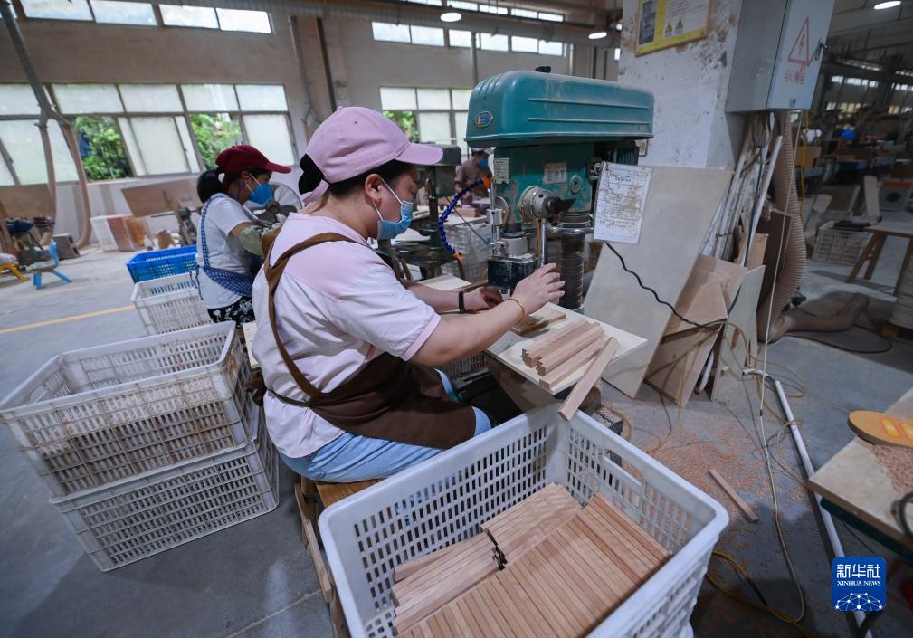 8月31日,在位于云和縣的浙江金馬工藝品有限公司的車(chē)間內,工人在加工木制玩具。