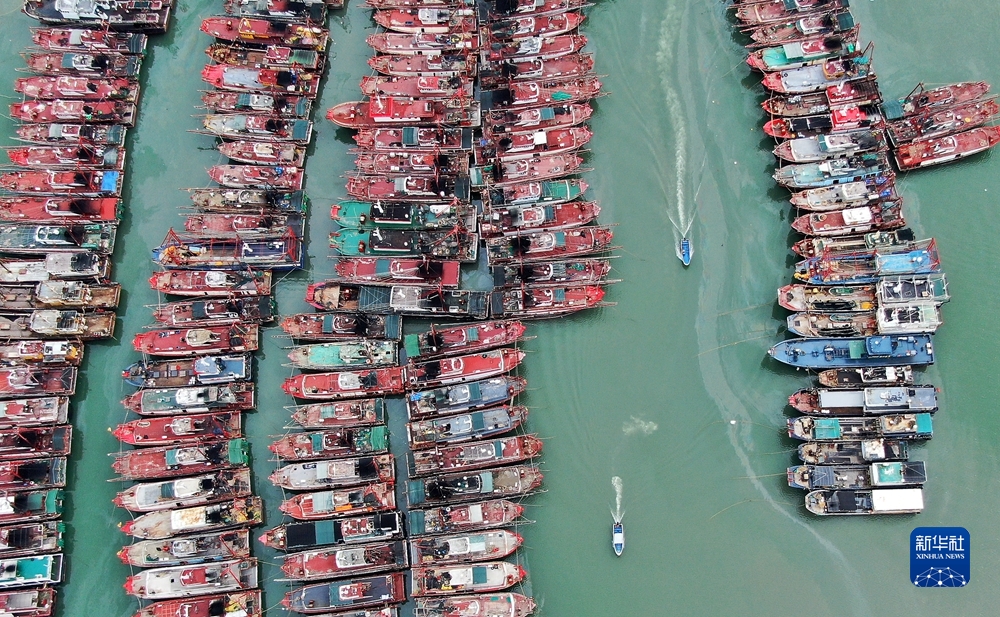 8月31日,在廣東省汕尾港避風(fēng)塘,漁船歸港避風(fēng)(無(wú)人機照片)。