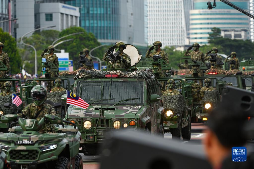 8月31日,士兵在馬來(lái)西亞普特拉賈亞參加馬來(lái)西亞獨立66周年慶典活動(dòng)。