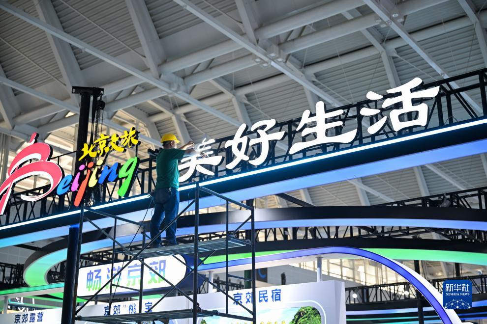 8月31日,在國家會(huì )展中心(天津),工作人員對展廳設施進(jìn)行布置。