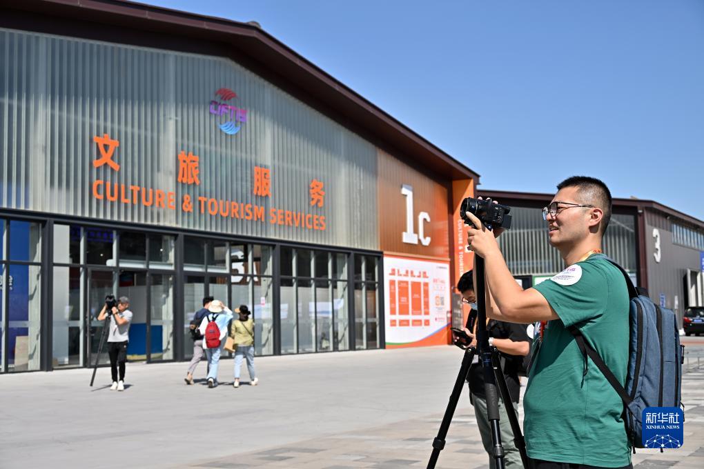 8月31日,參加探營(yíng)活動(dòng)的媒體記者在服貿會(huì )首鋼園區內拍攝。