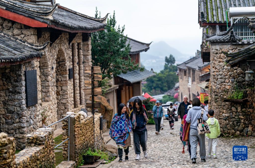 游客在麗江市玉龍納西族自治縣白沙鎮玉湖村觀(guān)光游覽(8月28日攝)。