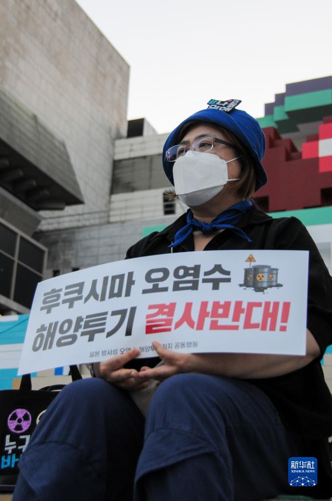 當日,韓國市民團體在首爾光化門(mén)廣場(chǎng)附近舉行集會(huì ),抗議日本核污染水排海。