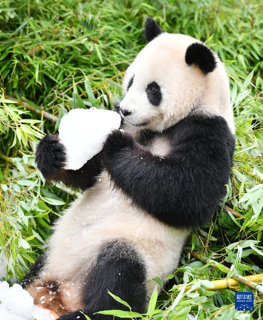 8月31日,大熊貓“夢(mèng)圓”在德國柏林動(dòng)物園享用“生日餐”。