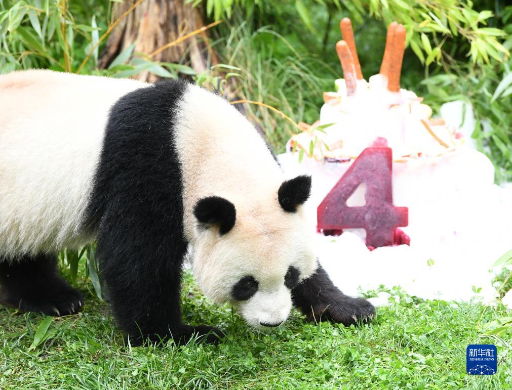 當日,在德國出生的大熊貓雙胞胎兄弟“夢(mèng)想”和“夢(mèng)圓”迎來(lái)4歲生日,柏林動(dòng)物園為它們舉辦了慶?;顒?dòng)。