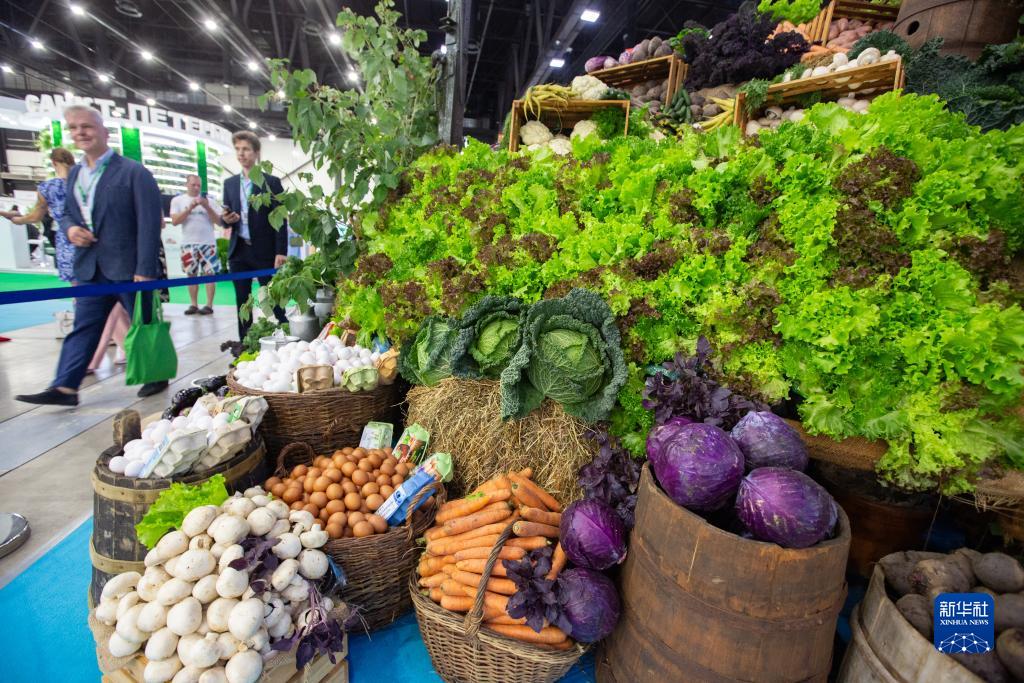 8月31日,參觀(guān)者在俄羅斯圣彼得堡第32屆國際農業(yè)工業(yè)展農產(chǎn)品展區參觀(guān)。