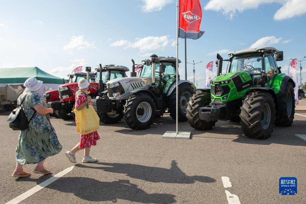 8月31日,參觀(guān)者在俄羅斯圣彼得堡第32屆國際農業(yè)工業(yè)展上參觀(guān)農業(yè)設備。