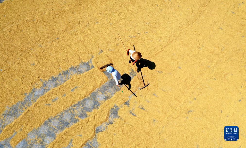 初秋時(shí)節,各地農民搶抓晴好天氣,加緊收獲、晾曬農作物。