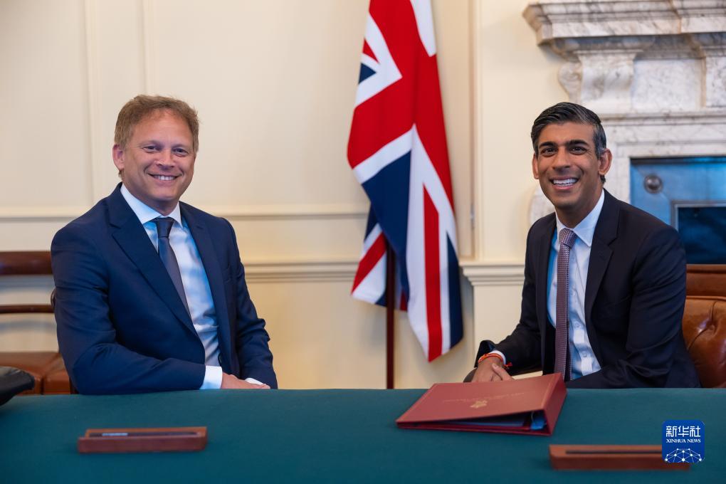 這是8月31日在英國倫敦首相府拍攝的英國首相蘇納克(右)和格蘭特·沙普斯。