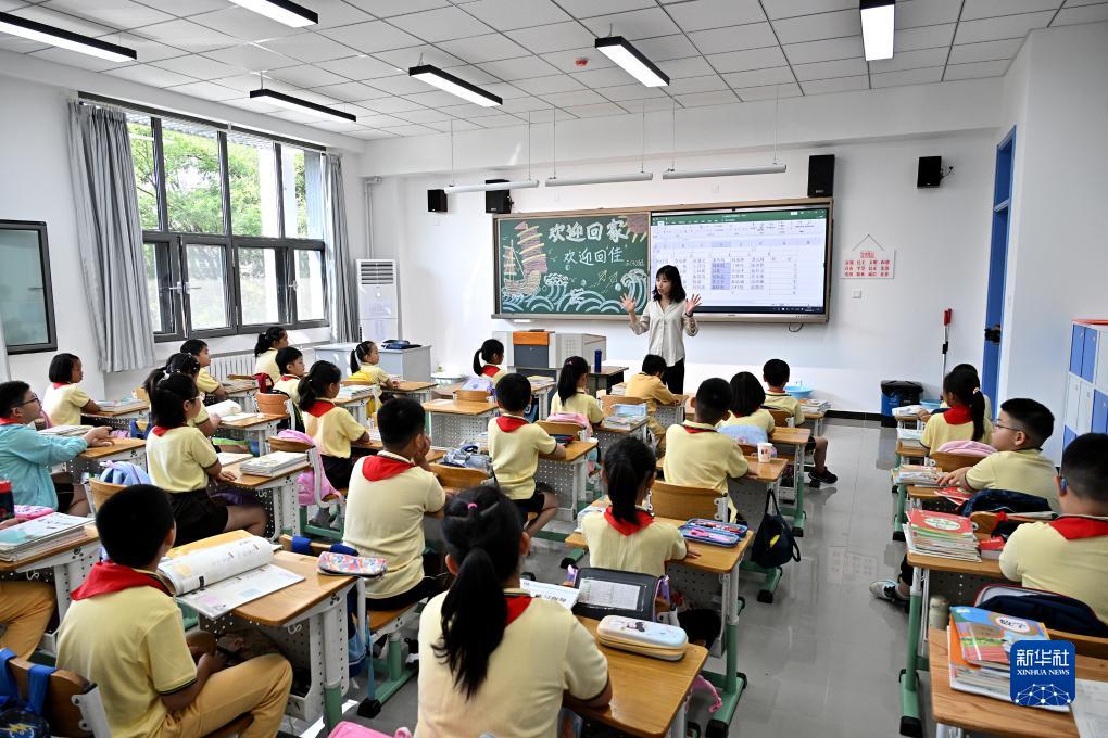 9月1日,北京第二實(shí)驗小學(xué)涭水河分校三年級3班學(xué)生在上課。