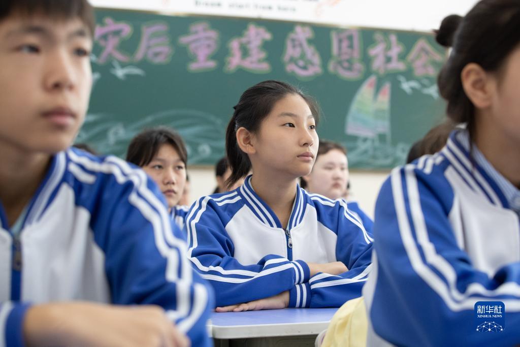 9月1日,在哈爾濱市延壽縣第四中學(xué),學(xué)生在開(kāi)學(xué)第一課上聽(tīng)講。