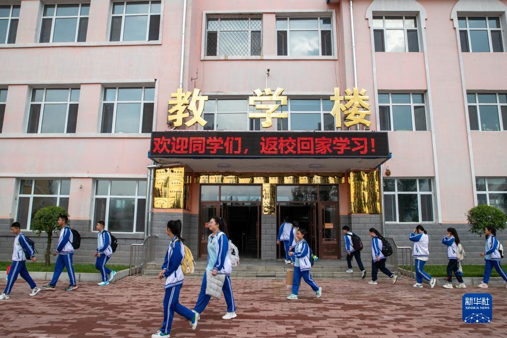9月1日,在哈爾濱市延壽縣第四中學(xué),學(xué)生有序進(jìn)入校園。