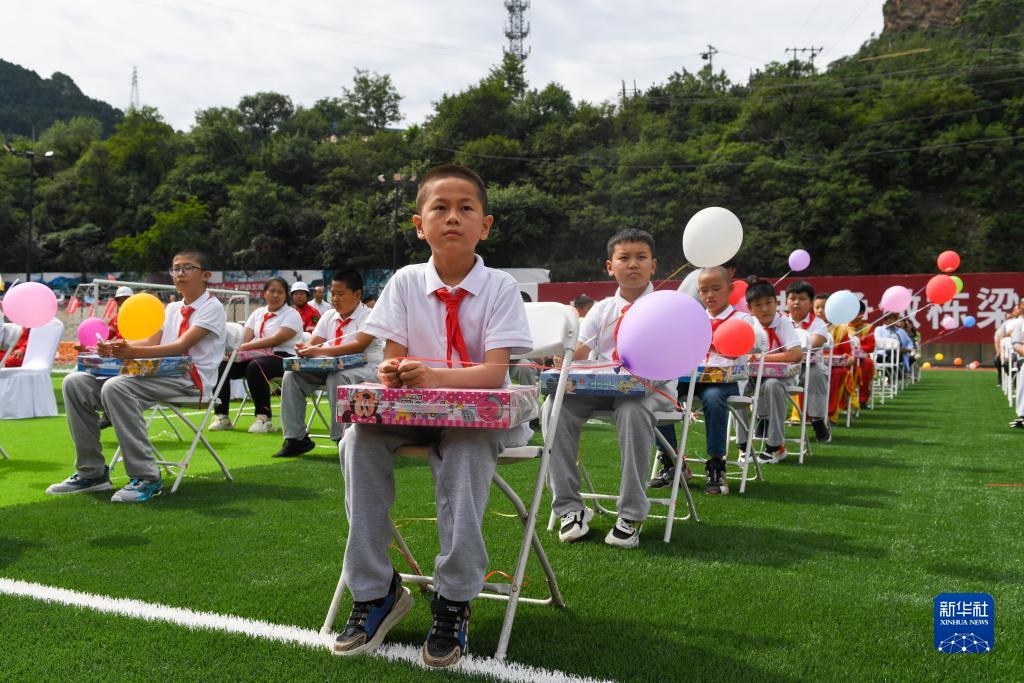 9月1日,在北京市房山區霞云嶺鄉霞云嶺中心小學(xué),學(xué)生在修繕一新的操場(chǎng)上參加開(kāi)學(xué)典禮。