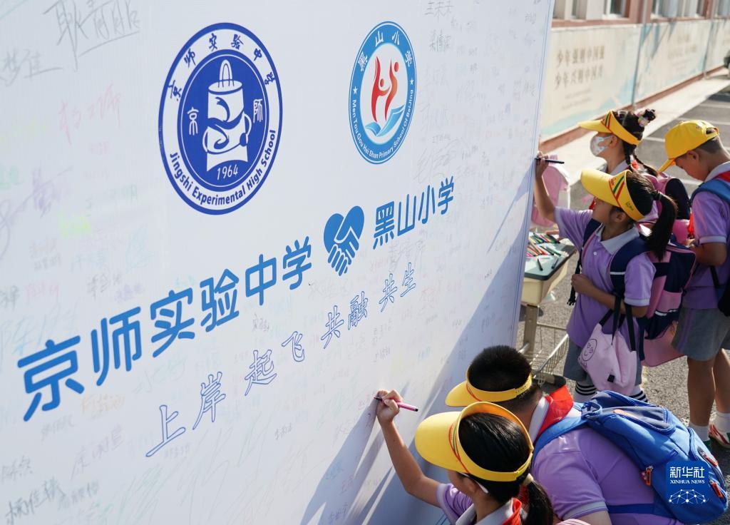 9月1日,在京師實(shí)驗中學(xué)借址開(kāi)學(xué)的門(mén)頭溝區黑山小學(xué)的學(xué)生來(lái)到校園。