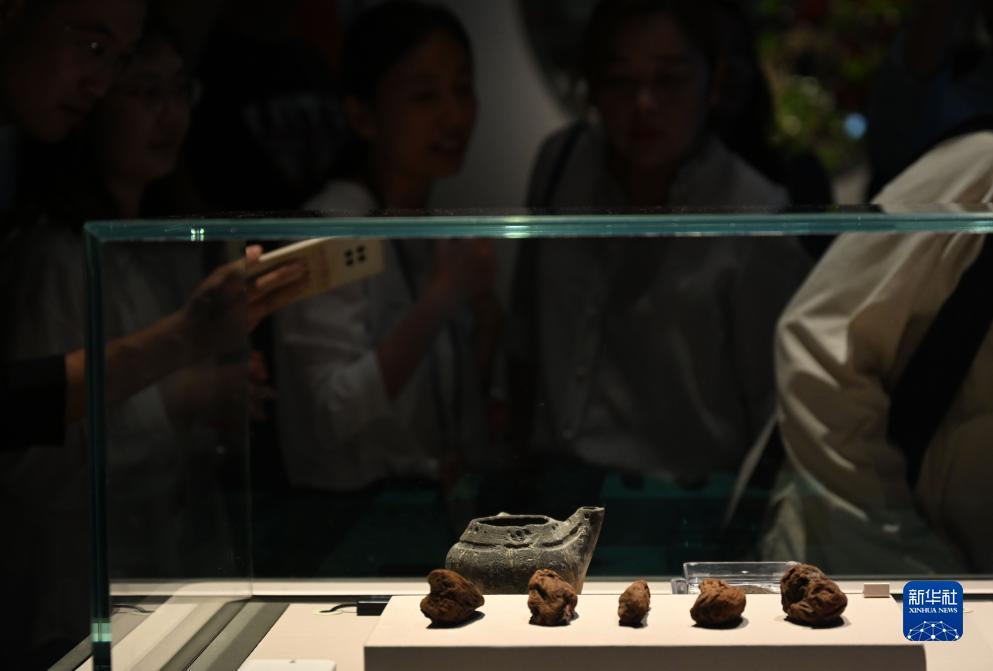 9月1日,嘉賓參觀(guān)浙江余姚田螺山遺址出土的人工種植茶樹(shù)根。