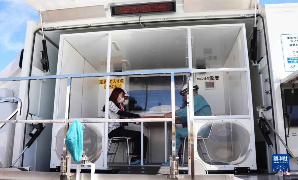 9月1日,在日本神奈川縣相模原市,民眾在地震體驗車(chē)內感受模擬地震。