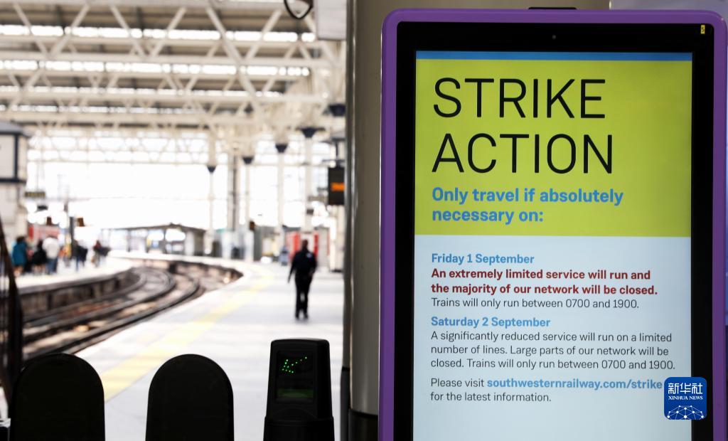因在收入、工作條件等方面與鐵路運營(yíng)企業(yè)存在分歧,英國鐵路員工在9月1日、2日舉行罷工。由于鐵路服務(wù)大幅減少,人們出行面臨不便。