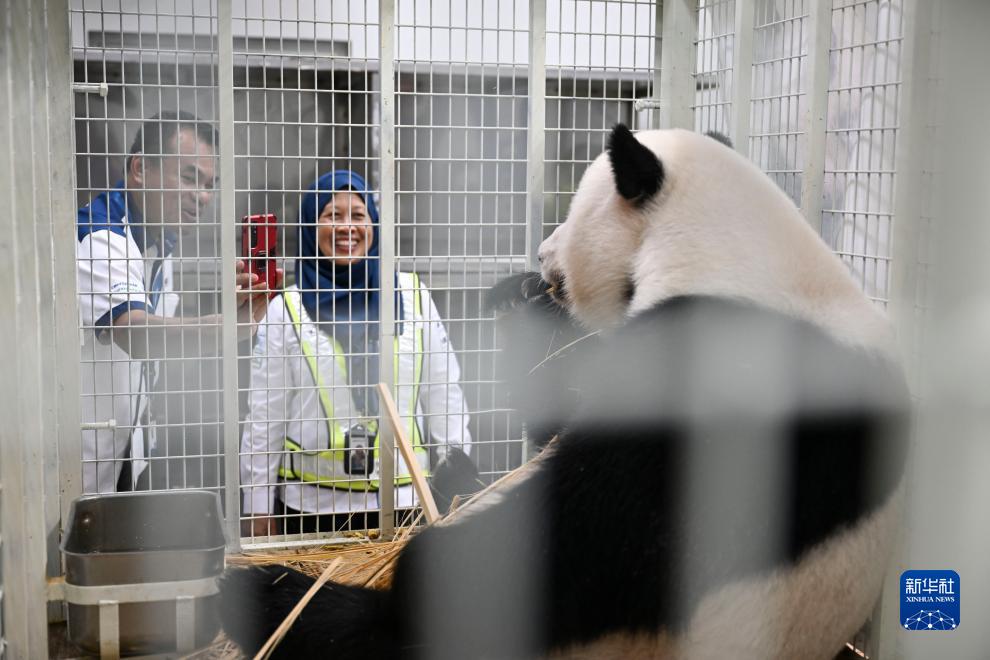 8月29日,工作人員在馬來(lái)西亞吉隆坡給大熊貓“誼誼”拍照。