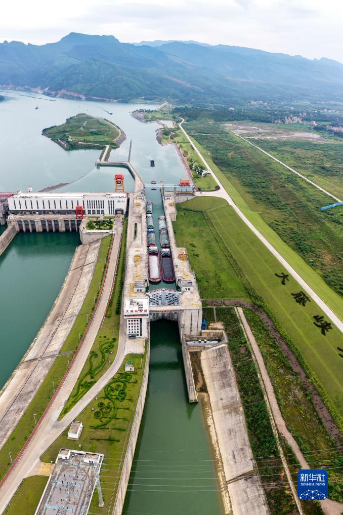 9月2日拍攝的廣西大藤峽水利樞紐船閘(無(wú)人機照片)。