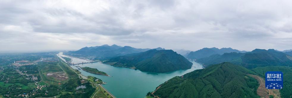 9月2日拍攝的廣西大藤峽水利樞紐和周邊峽谷(無(wú)人機全景照片)。