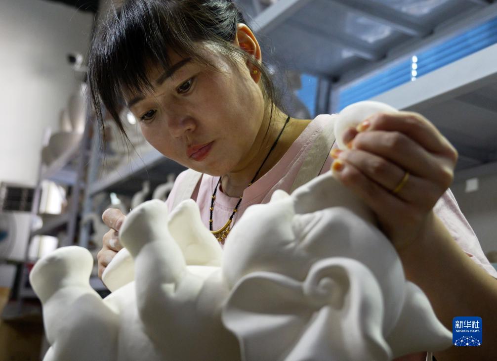8月31日,在清涼寺村的一家汝瓷生產(chǎn)企業(yè),工作人員在車(chē)間里加工汝瓷素坯。
