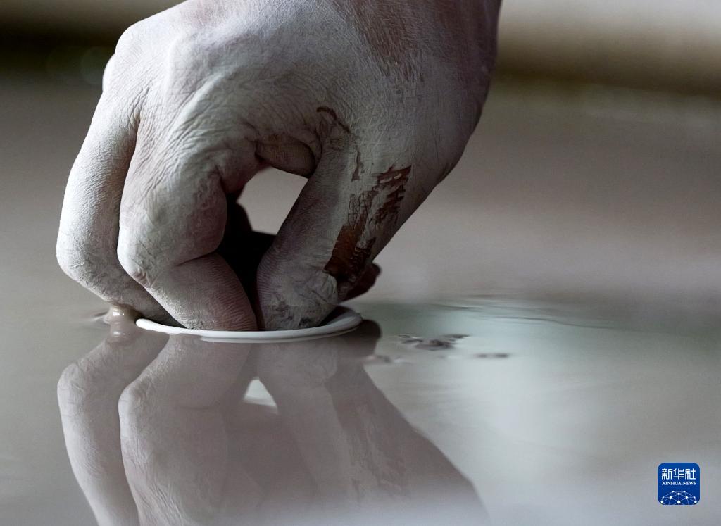 8月31日,在清涼寺村的一家汝瓷生產(chǎn)企業(yè),汝瓷藝人王占穩在車(chē)間里施釉。