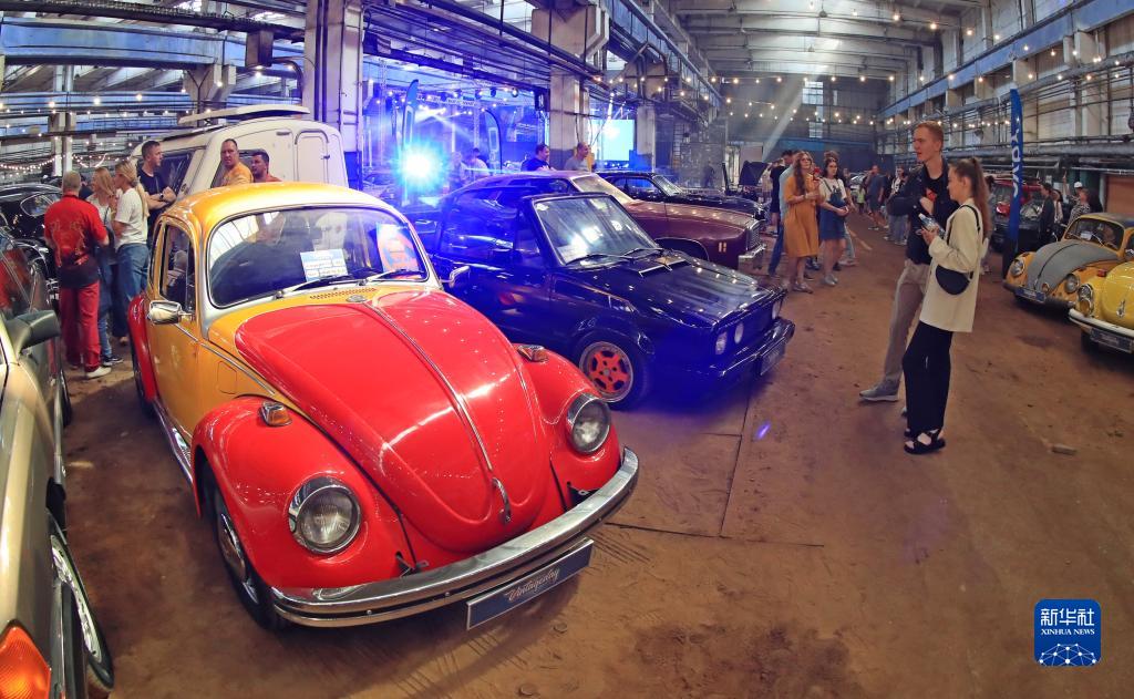 9月2日,人們在白俄羅斯明斯克參觀(guān)老爺車(chē)。