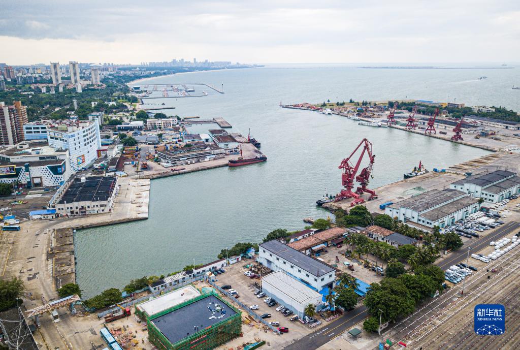 9月2日拍攝的海南省??谑行阌⒏鄞a頭,客滾輪已全部前往錨地避風(fēng)(無(wú)人機照片)。
