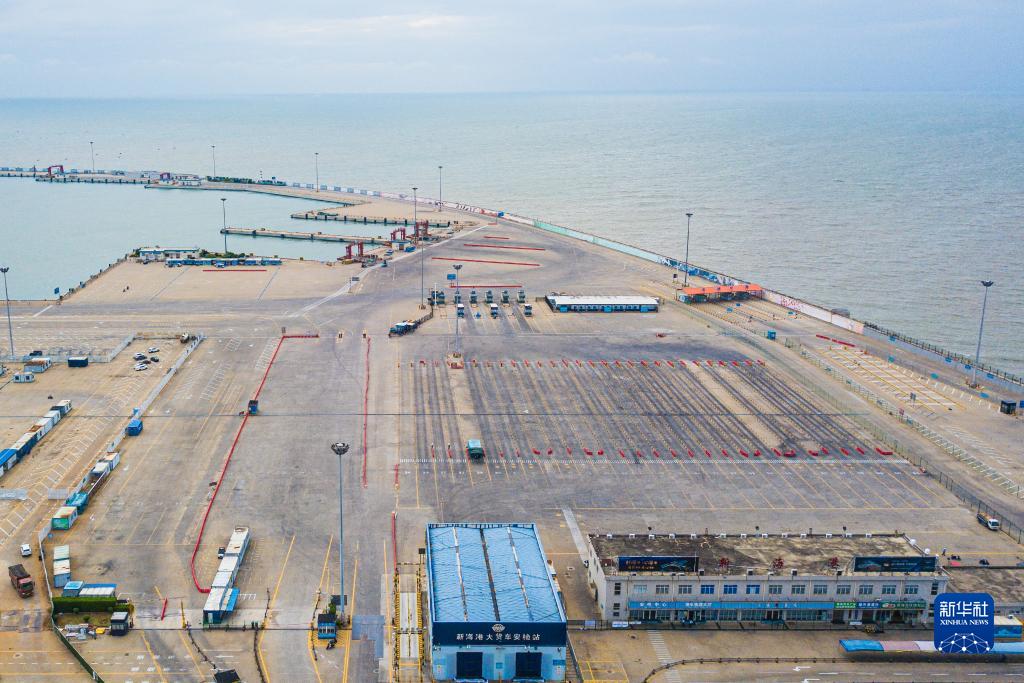 9月2日在海南省??谑行潞8叟臄z的待渡車(chē)場(chǎng)(無(wú)人機照片)。