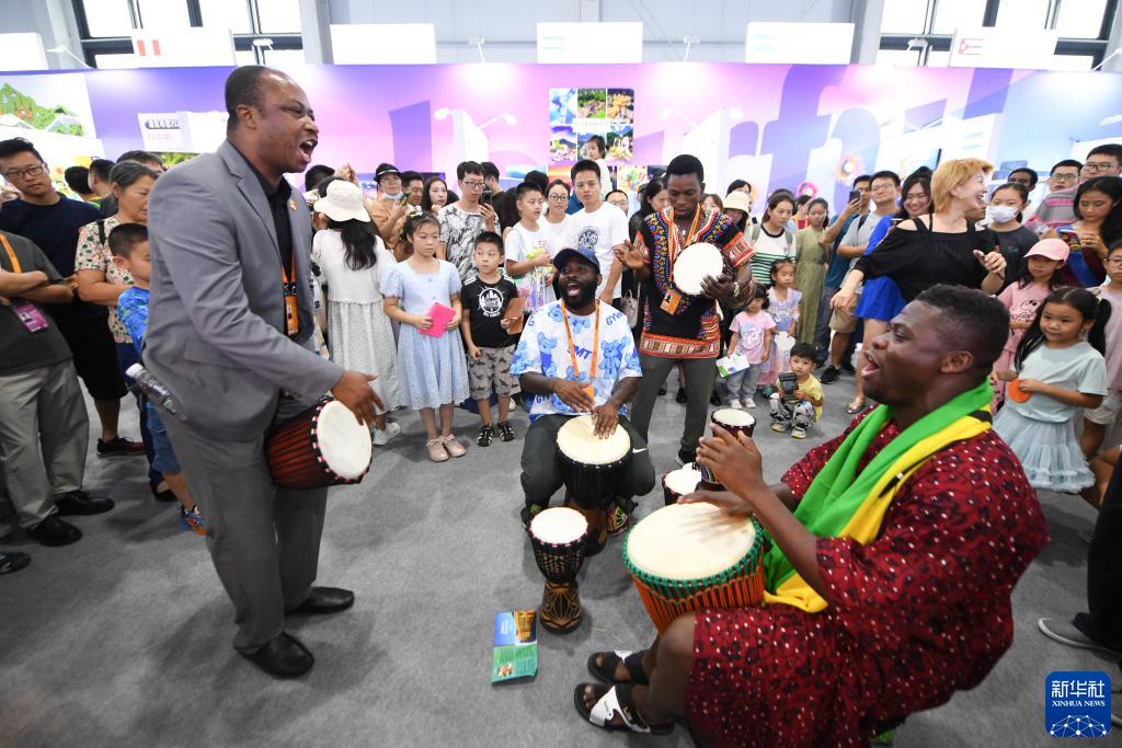 9月2日,在“一帶一路”沿線(xiàn)國家特色文化展示活動(dòng)上,加納共和國駐華大使館展區的工作人員在現場(chǎng)即興表演。