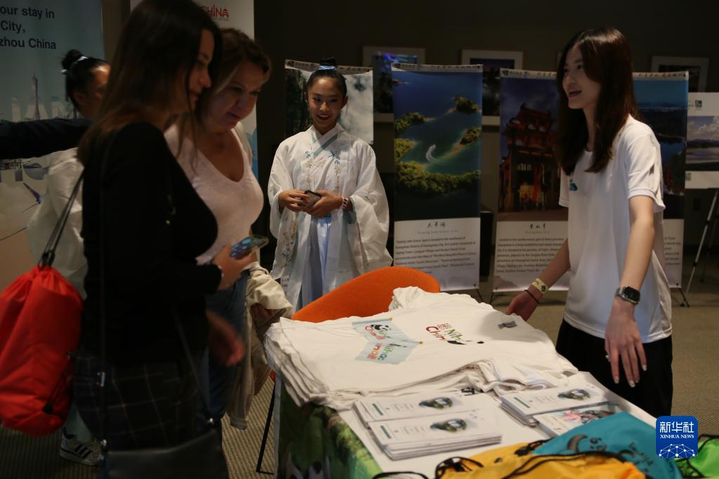 9月1日,在美國紐約花旗球場(chǎng),一名工作人員在“中華之夜”暨“你好!中國”旅游推廣品牌發(fā)布活動(dòng)上為觀(guān)眾介紹情況。