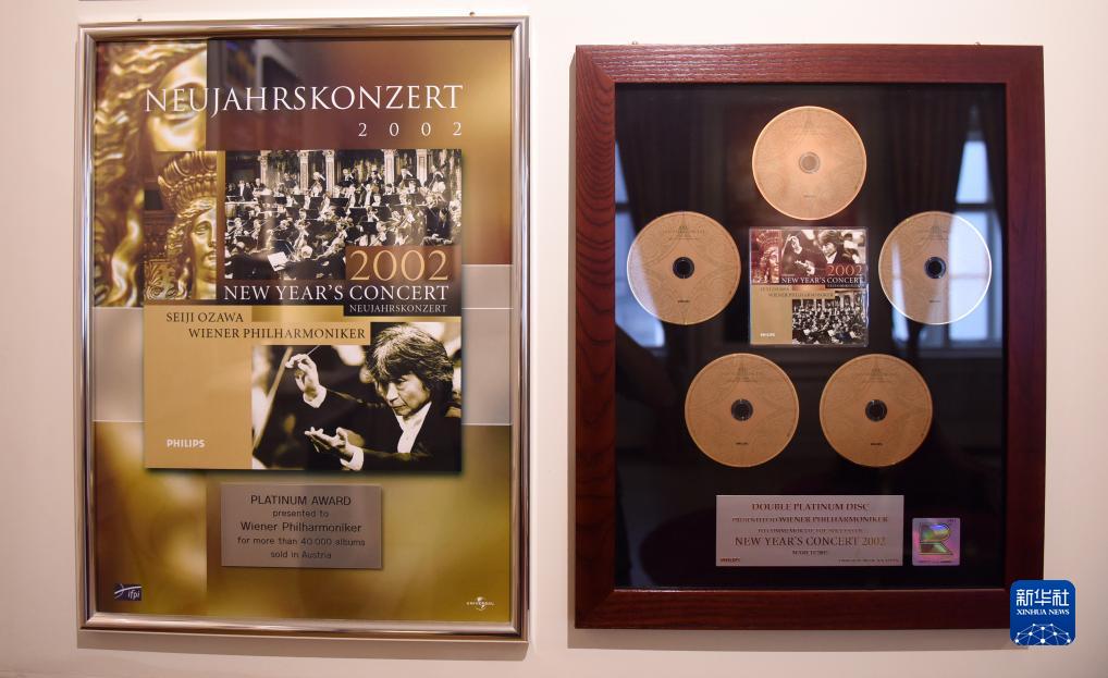 這是9月2日在奧地利維也納“音樂(lè )之家”拍攝的2002年維也納新年音樂(lè )會(huì )海報和唱片。