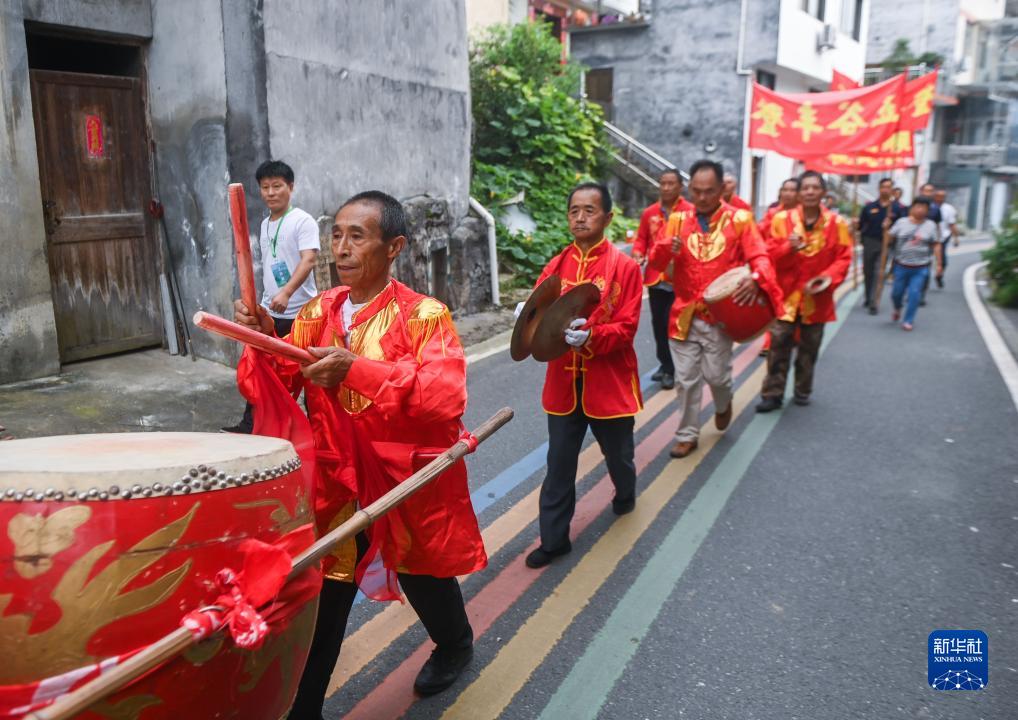9月3日,王阜村村民在村里舉行傳統巡游,迎接豐收。