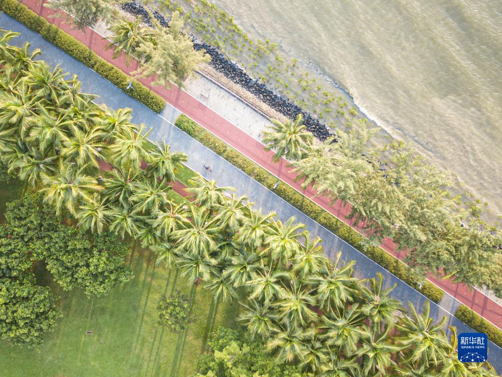 9月1日,游客在海南省??谑泻?跒瞅T行(無(wú)人機照片)。??跒澄挥诤D鲜『?谑兄行膮^,海灣面積268.2平方千米,打造了“椰風(fēng)海韻、灣城融通”的海灣景觀(guān),是??谑邪l(fā)展的重要依托和生態(tài)名片。