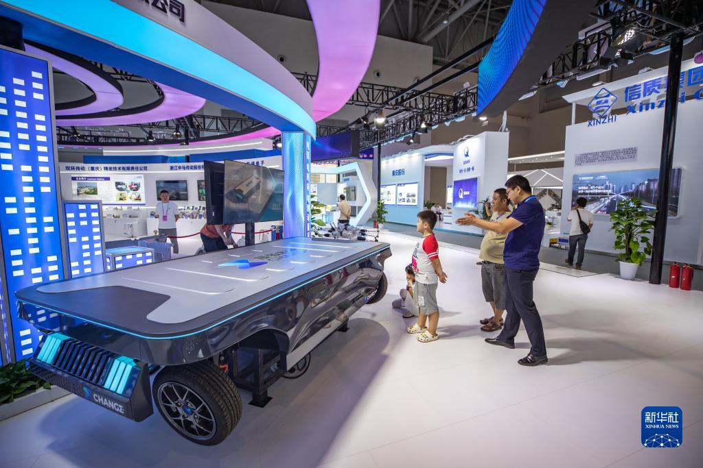 9月3日,嘉賓在2023中國國際智能產(chǎn)業(yè)博覽會(huì )展廳內參觀(guān)智能汽車(chē)滑板底盤(pán)產(chǎn)品。