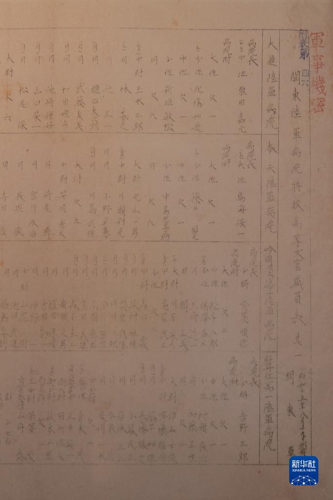 這是在侵華日軍第七三一部隊罪證陳列館拍攝的《關(guān)東陸軍病院將校高等文官職員表》(影印件)(9月2日攝)。