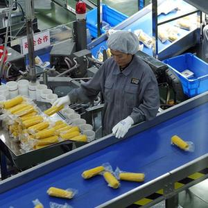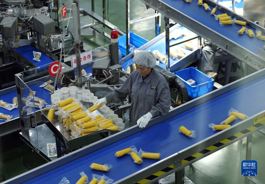 9月2日,在位于齊齊哈爾市依安縣的北緯四十七綠色有機食品有限公司生產(chǎn)車(chē)間,工人在分裝鮮食玉米。