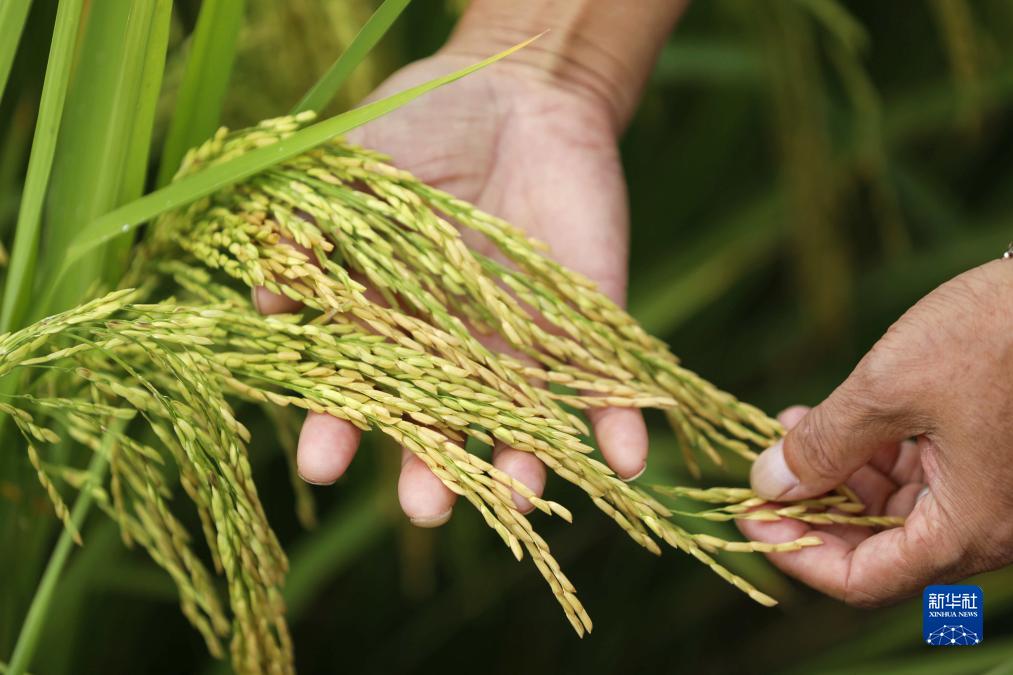 9月4日,村民在貴州省錦屏縣敦寨鎮亮司村查看稻谷的成熟情況。