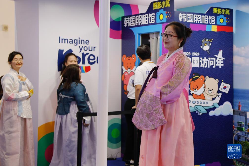 9月4日,在服貿會(huì )國家會(huì )議中心的韓國展臺,觀(guān)眾在拍照留念。