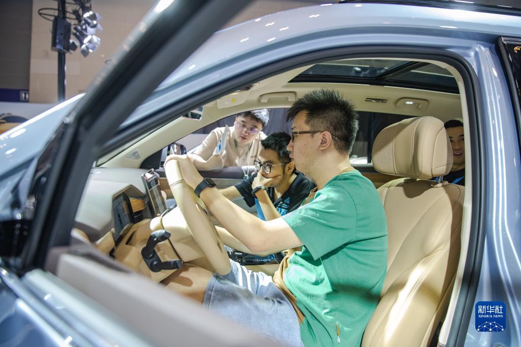 9月4日,觀(guān)眾在2023智博會(huì )賽力斯展廳內參觀(guān)了解新能源汽車(chē)。