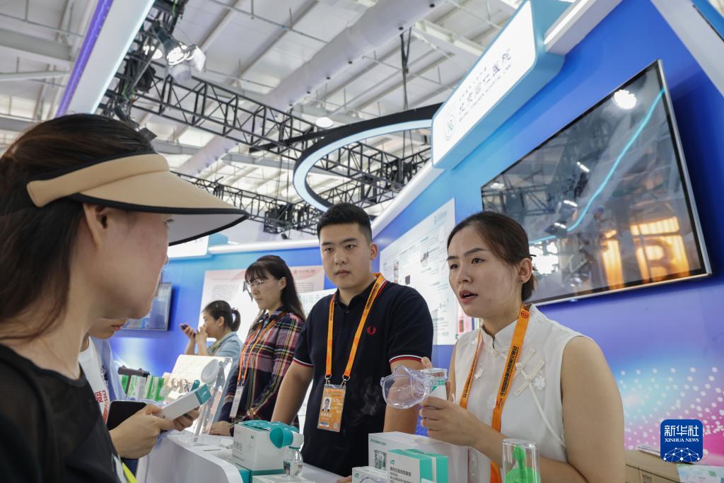 9月4日,在首鋼園健康衛生服務(wù)專(zhuān)題展區,工作人員在北京同仁醫院展臺介紹家用霧化器。